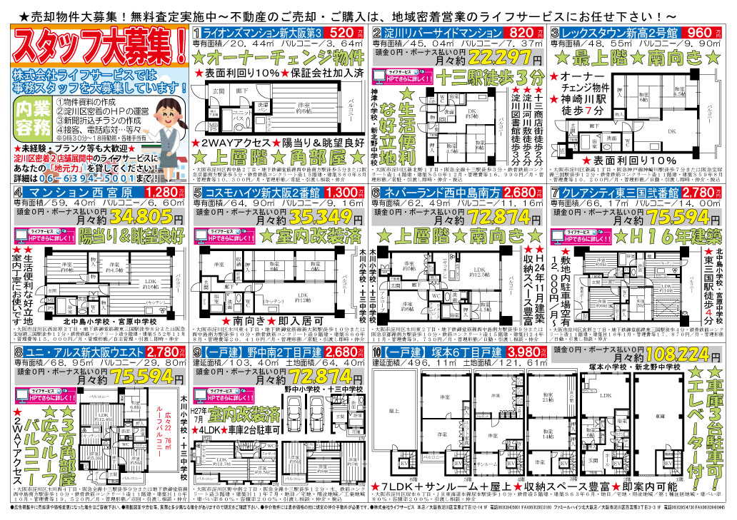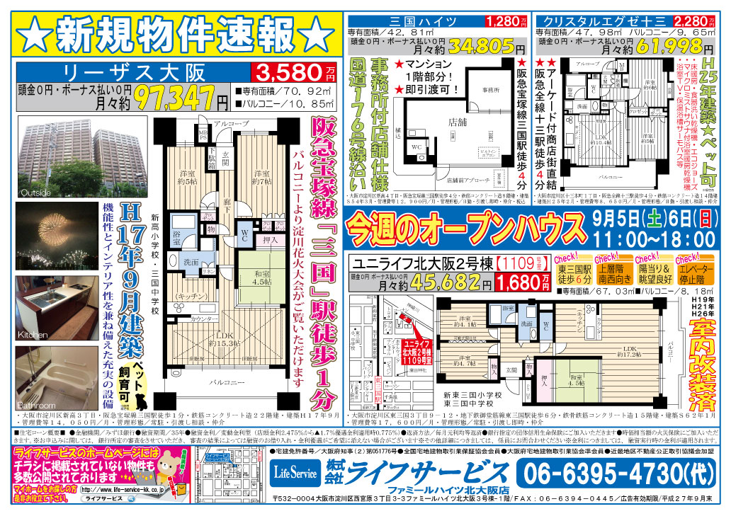 9月5日(土)6日(日)『淀川リバーサイドマンション』『野中南2丁目戸建』にてオープンハウスを開催いたします。
