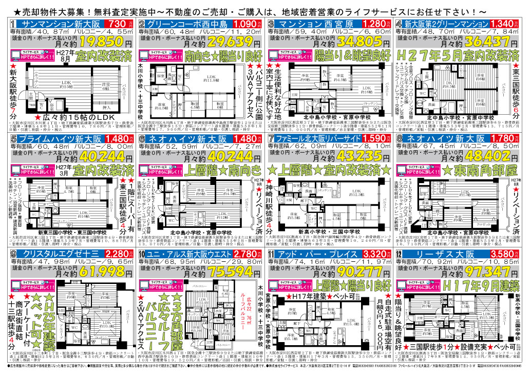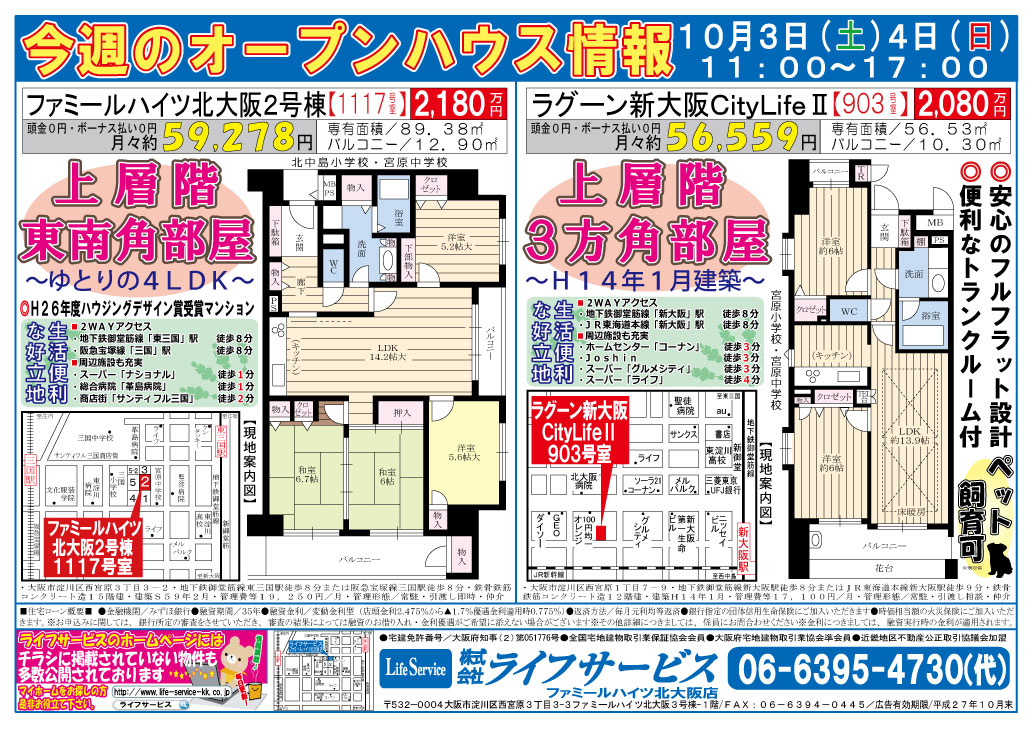 10月3日(土)4日(日)『ファミールハイツ北大阪2号棟』『ラグーン新大阪CityLfeⅡ』にてオープンハウスを開催いたします。