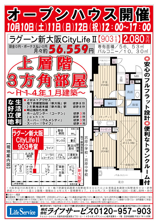 10月10日(土)11日(日)12日(祝)『ラグーン新大阪CityLifeⅡ』にてオープンハウスを開催いたします。