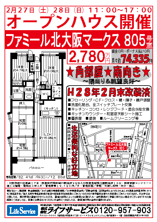 2月27日(土)28日(日)「ファミール北大阪マークス」にてオープンハウスを開催いたします。