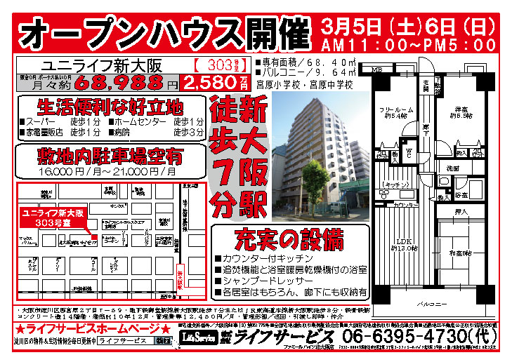 3月5日(土)6日(日)「ユニライフ新大阪」にてオープンハウス開催致します。