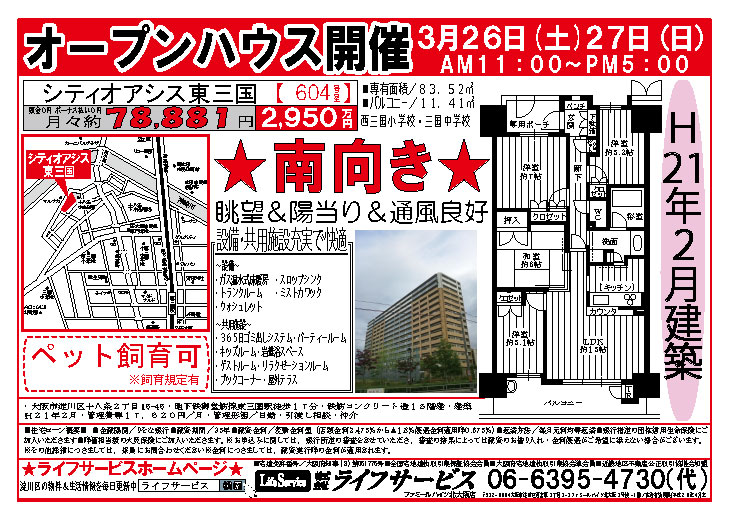 3月26日(土)27日(日)「シティオアシス東三国」にてオープンハウス開催致します。