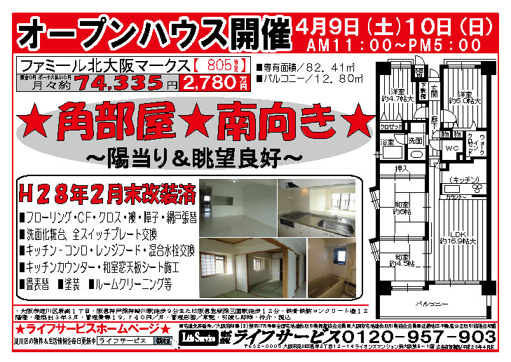 4月9日(土)10日(日)ユニライフ新大阪にてオープンハウス開催致します。チラシを掲載しております。ごゆっくりご覧ください。