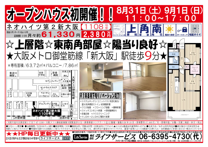 8月31日(土)9月1日(日)「ネオハイツ第2新大阪」にてオープンハウスを開催いたします。