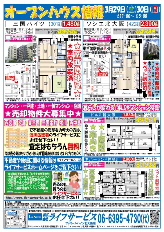 3月19日(土)30日(日)『三国ハイツ』『ソシエ北大阪』にてオープンハウスを開催致します。