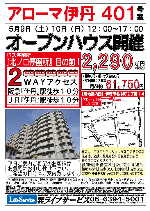 5月9日(土)10日(日)『アローマ伊丹』にてオープンハウスを開催いたします。