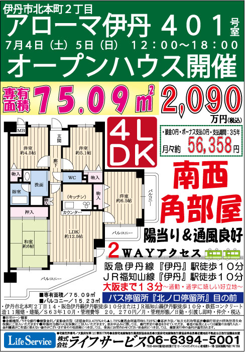 7月4日(土)5日(日)『アローマ伊丹』にてオープンハウスを開催いたします。