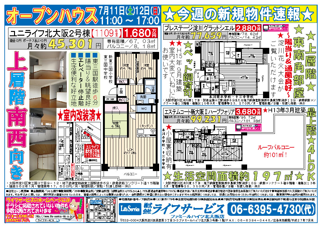 7月11日(土)12日(日)ユニライフ北大阪2号棟