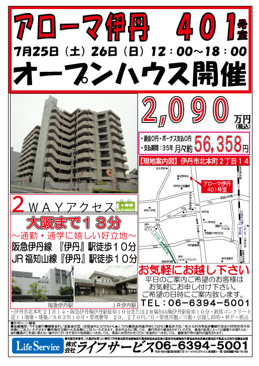 7月25日(土)26日(日)『アローマ伊丹』にてオープンハウスを開催いたします。