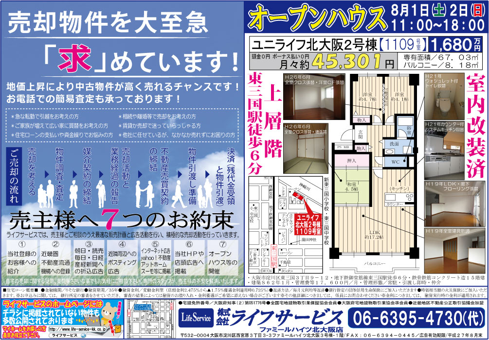 8月1日(土)2日(日)『淀川リバーサイドマンション』『アローマ伊丹』にてオープンハウスを開催いたします。チラシを掲載しております。ごゆっくりご覧ください。